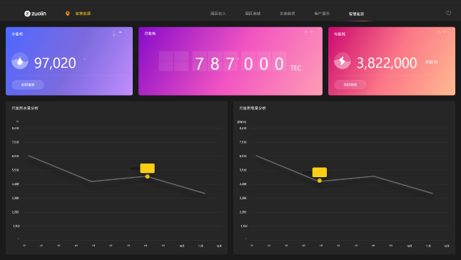 數(shù)據(jù)采集和分析,能耗管理創(chuàng)新,總耗水耗電數(shù)、月度用水量、用電量分析等